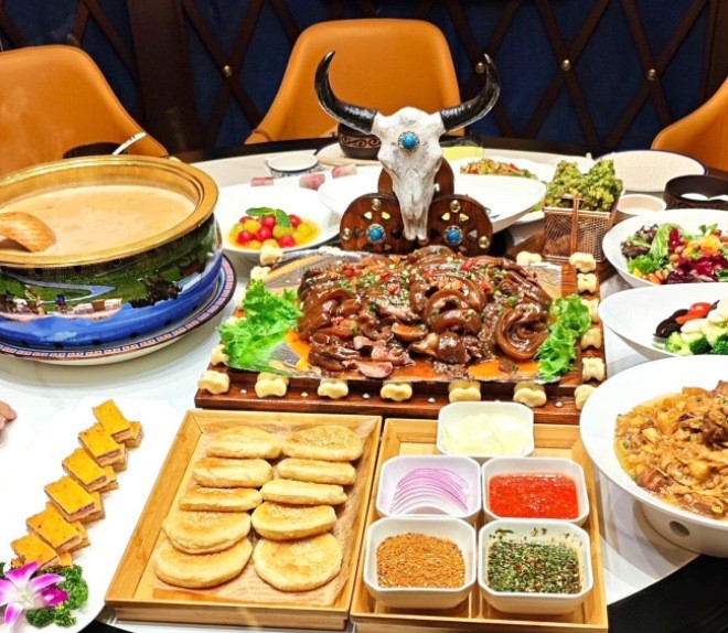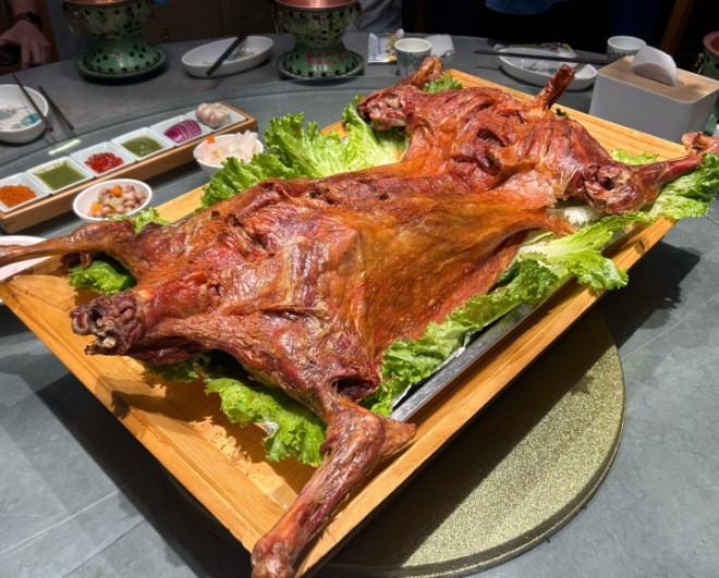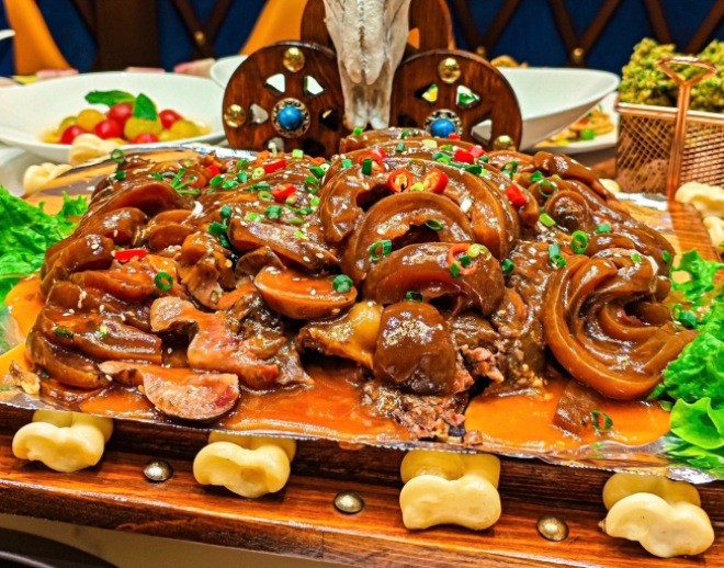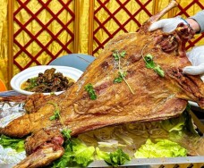 蒙香原生態(tài)烤全羊美味獨(dú)一家,整烤整吃。第一大特色就是烤羊不用腌制,在烤制的過(guò)程中不斷的刷上配料油,一層一層的滲入,這樣烤出的羊肉非常的入味。第二個(gè)特色就是燒烤用果木的炭火烤的,烤出的羊肉就帶上了果木的芬香。燒烤師傅精心研發(fā)的秘制醬料,數(shù)十種香料經(jīng)過(guò)六小時(shí)的熬制才做出來(lái)的。外表的酥脆口感和里面鮮嫩的肉質(zhì)簡(jiǎn)直給你一個(gè)奇妙的味蕾體驗(yàn)??救虺鰻t油光紅亮,裝盤大氣;入口外酥里嫩,鮮美爽滑;不油不膩,不膻不燥,食后不上火。
