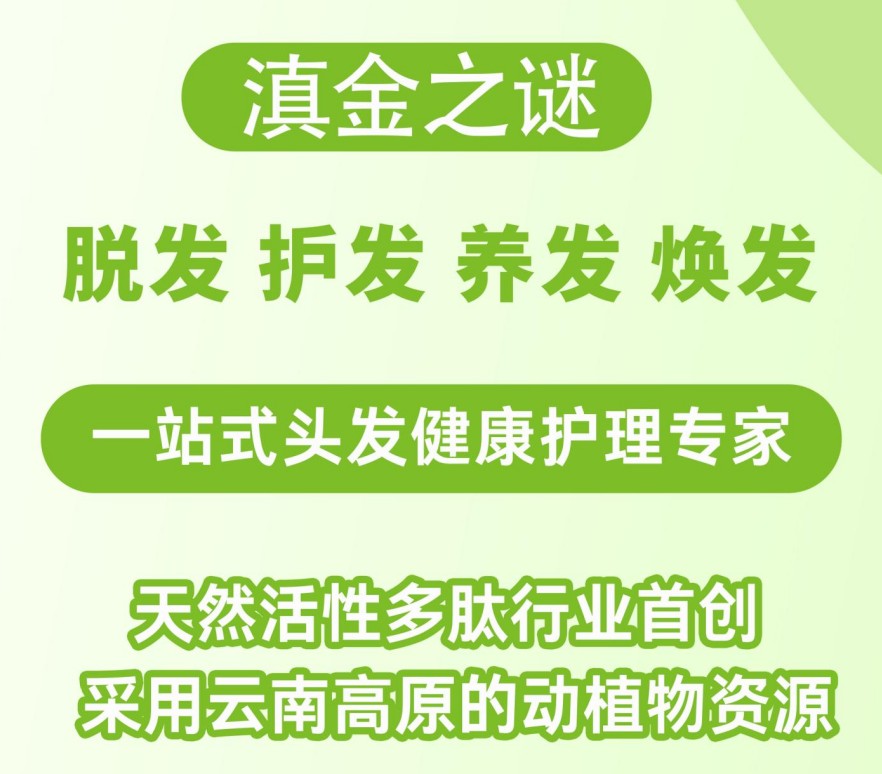 滇金之謎的底氣,首先源于其無(wú)可替代的行業(yè)地位。作為天然活性多肽行業(yè)開(kāi)創(chuàng)者,它打破了傳統(tǒng)頭皮護(hù)理產(chǎn)品的局限,率先將源自云南高原的天然活性多肽應(yīng)用于頭皮護(hù)理領(lǐng)域。要知道,云南高原的原生態(tài)動(dòng)植物資源,是大自然贈(zèng)予的珍貴寶庫(kù),而從中提取的天然活性多肽,富含20多種人體所需的氨基酸,這些營(yíng)養(yǎng)成分能深入頭皮肌理,為頭皮健康提供強(qiáng)效呵護(hù),從根源上解決脫發(fā)、頭皮敏感等問(wèn)題,這讓滇金之謎從誕生之初就自帶“王牌基因”。