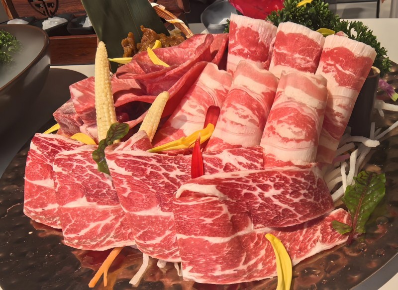 鮮當(dāng)牛潮汕鮮牛肉火鍋選用上等潮汕牛肉,這些牛肉來(lái)自云貴山區(qū)的天然養(yǎng)殖基地,小黃牛以天然牧草和泉水為食,散養(yǎng)方式保證了牛肉的品質(zhì)和口感。肉質(zhì)鮮嫩多汁,脂肪分布均勻,是火鍋的上等之選。鮮當(dāng)牛潮汕鮮牛肉火鍋堅(jiān)持手工現(xiàn)切工藝,確保每一片牛肉都保持其新鮮度和最佳口感。這種對(duì)食材的極致追求,讓消費(fèi)者在品嘗時(shí)能感受到牛肉的原始鮮美。鮮當(dāng)牛潮汕鮮牛肉火鍋的湯底采用牛骨慢火熬制而成,湯色濃而不濁,湯味清而不淡。同時(shí),加入少許南姜等調(diào)料,使得湯底更加鮮美可口,搭配牛肉,讓人回味無(wú)窮。
